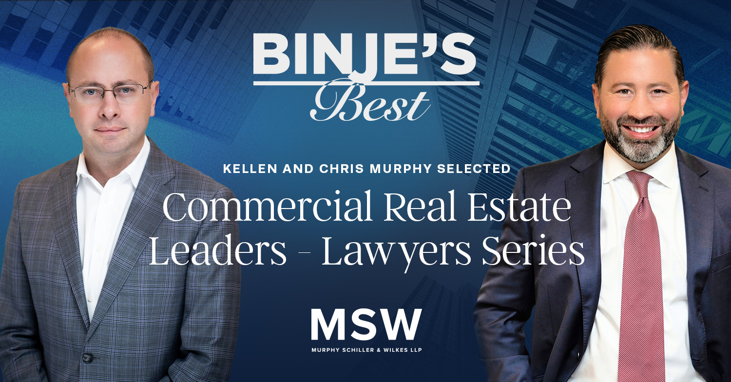Murphy Schiller & Wilkes LLP is proud to announce that Managing Partner Kellen Murphy and Partner Chris Murphy have been recognized by BINJE as part of its “Best Commercial Real Estate Leaders 2025 - Lawyers” series.