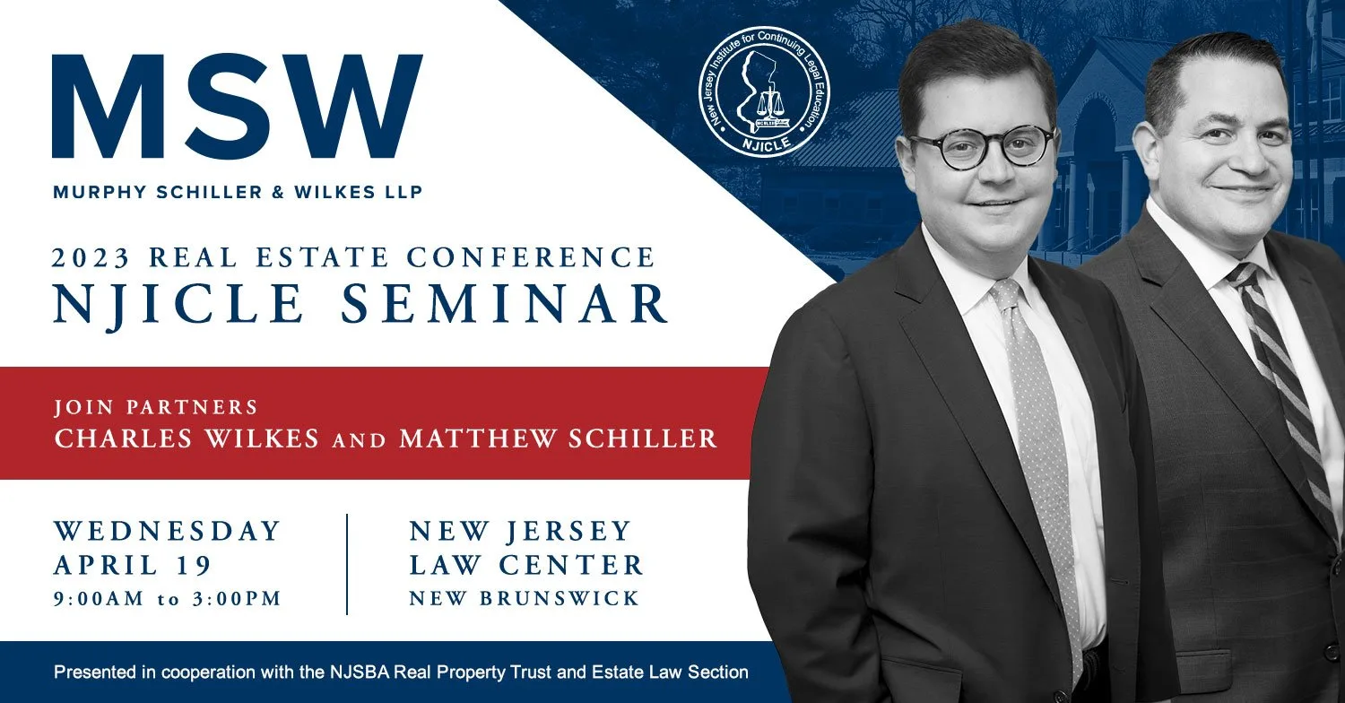 On Wednesday, April 19th, Murphy Schiller & Wilkes (MSW) attorneys Charles Wilkes and Matthew Schiller will present at the 2023 Real Estate Conference hosted by NJICLE, a division of the New Jersey State Bar Association.