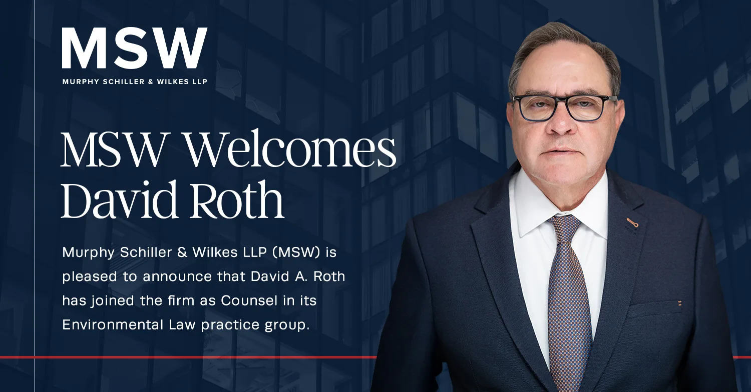 Newark, NJ — January 19, 2026 — Murphy Schiller & Wilkes LLP (MSW), a leading boutique law firm servicing the commercial real estate and construction industries, announced today that David A. Roth has joined the firm as Counsel in its Environmental Law practice group.